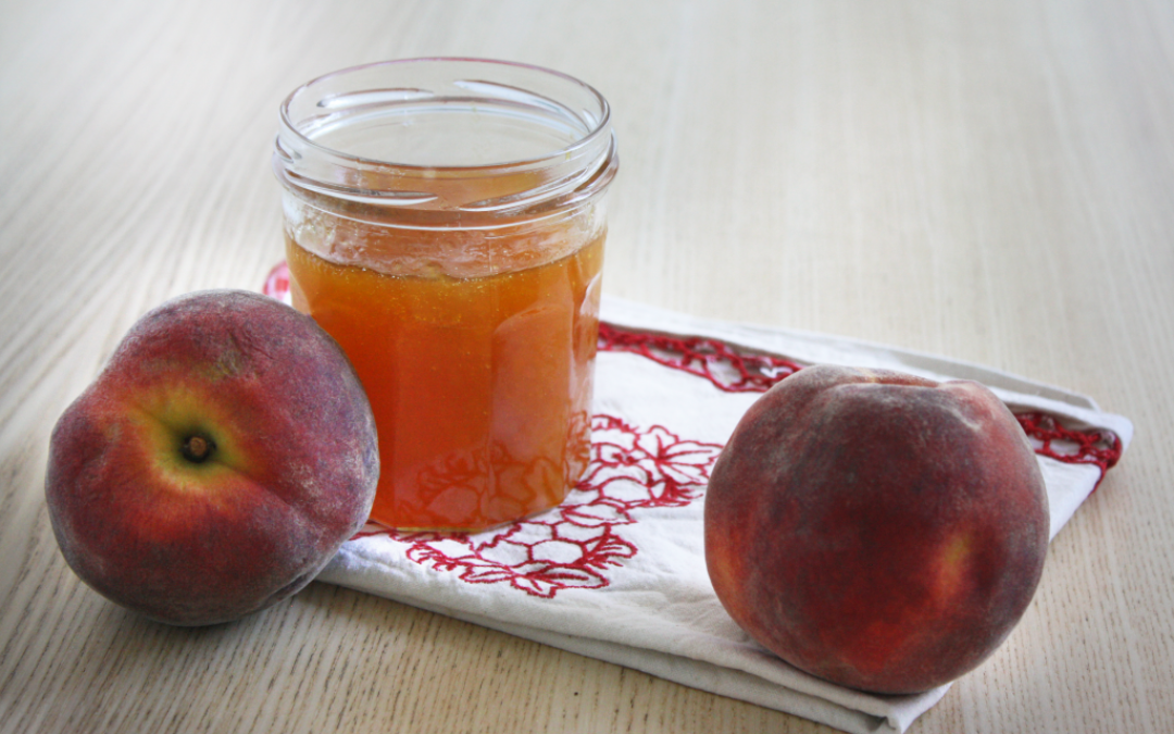 Quand vient l’été, j’adore préparer de la confiture d’abricots avec un soupçon de vanille et en faire suffisamment pour pouvoir tenir tout l’hiver. N’ayant pas trouvé d’abricots à mon goût mais des pêches très savoureuses, j’ai donc décidé de reprendre la saison des confitures avec une recette de confiture de pêches jaunes, aromatisée au thé au jasmin.